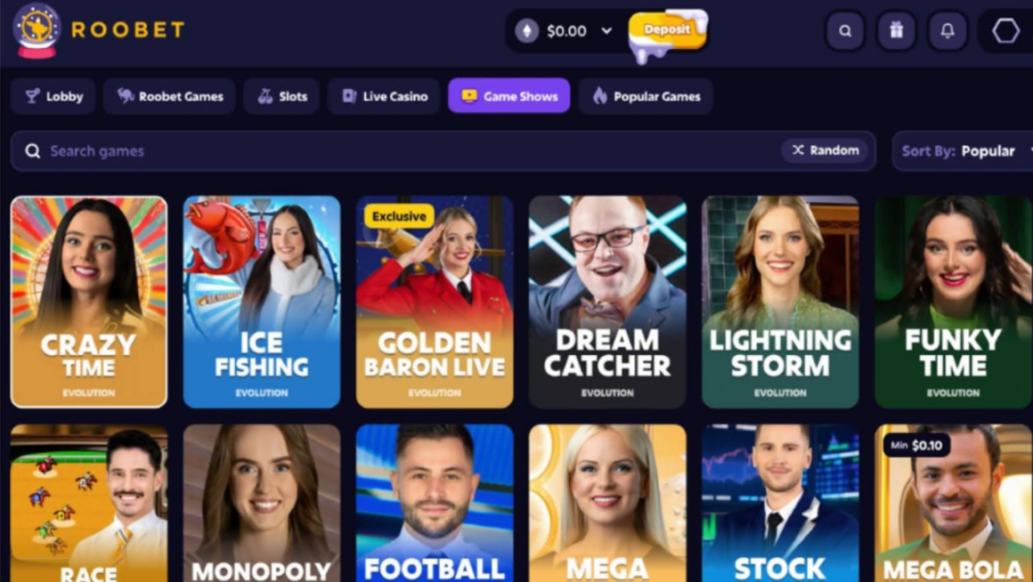 A screenshot of the Roobet game show page